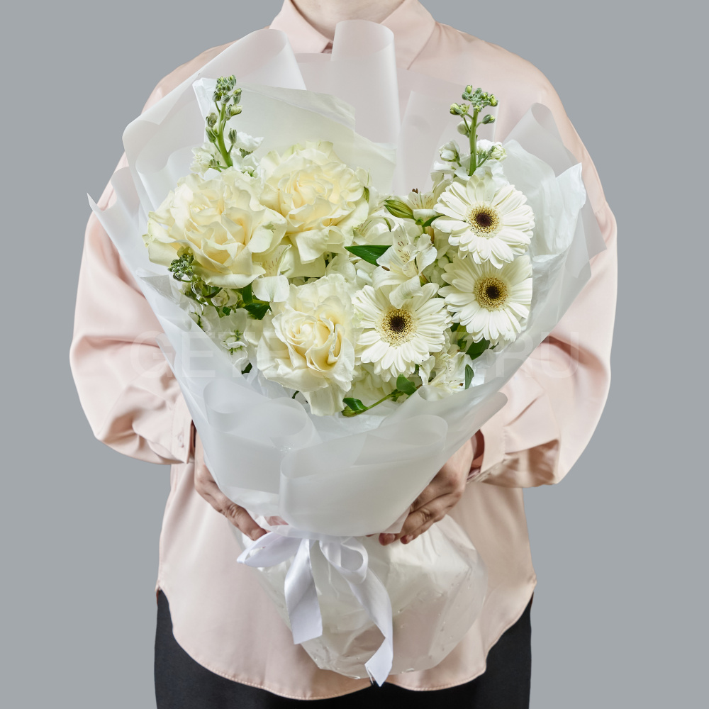 Букет из микса белых роз с аллиумом и альстромерий10 634 ₽Букет из микса белых роз с аллиумом и альстромерий 10 634 ₽ -
