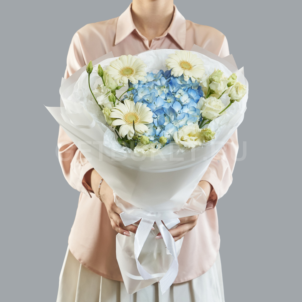 Букет из гербер, гортензии и эустомы