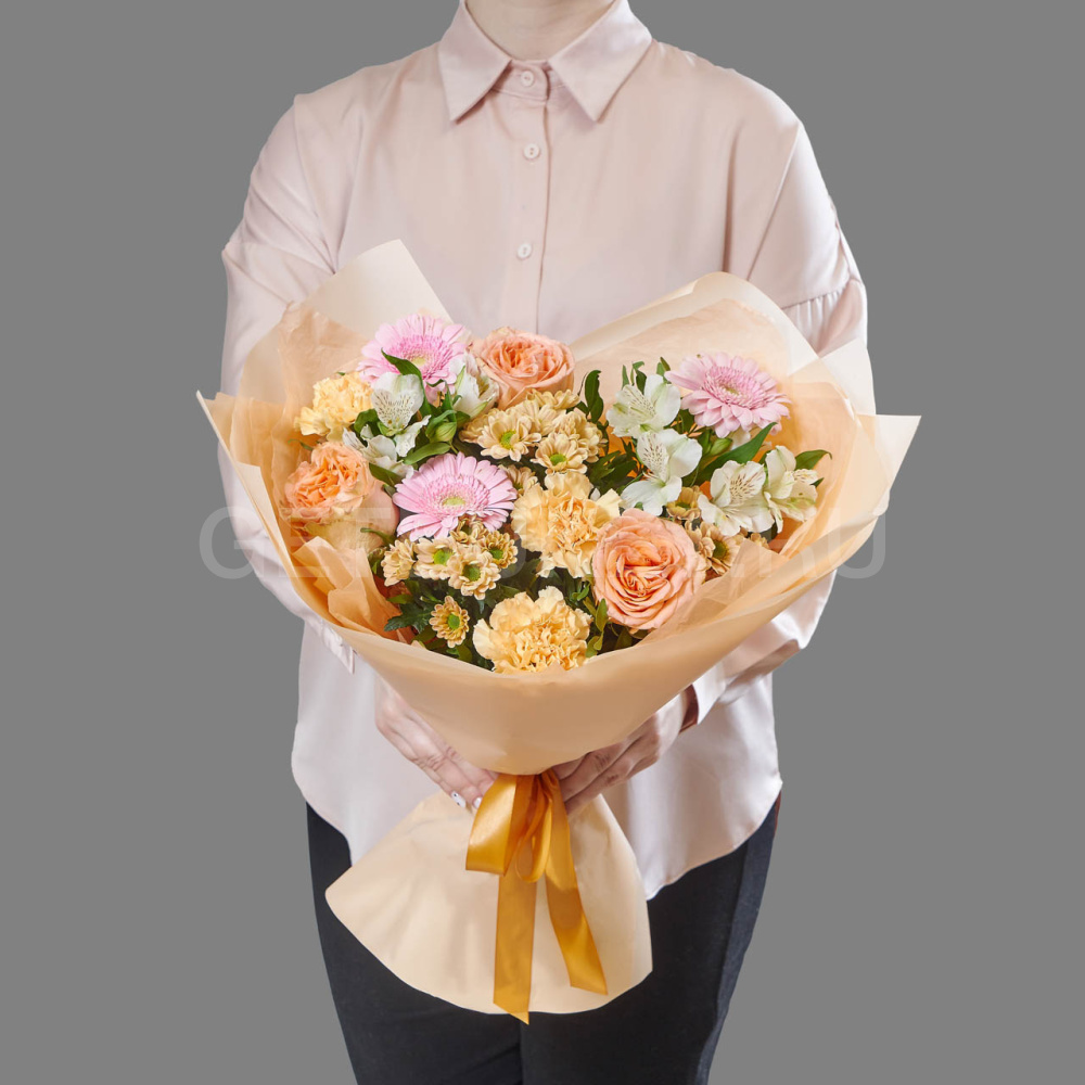 Букет из роз, альстромерий и гербер