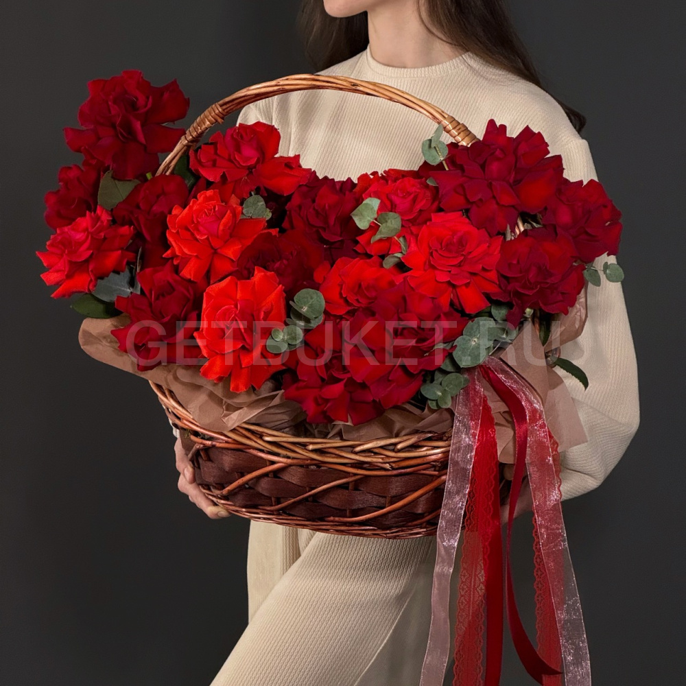Цветочная корзина из 27 красных роз Роза - 27 шт.