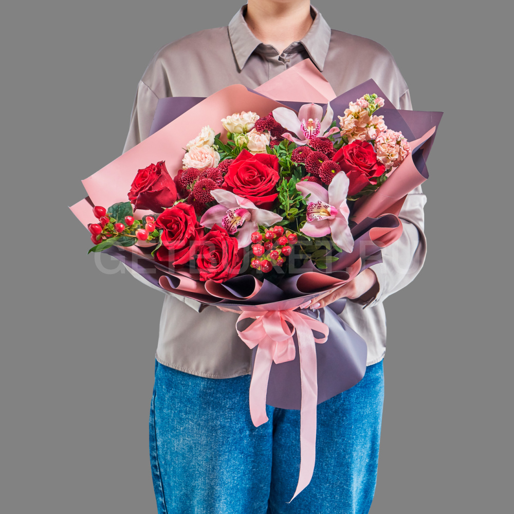 Букет из розовых гвоздик, роз и альстромерий3 523 ₽Букет из розовых гвоздик, роз и альстромерий 3 523 ₽ -