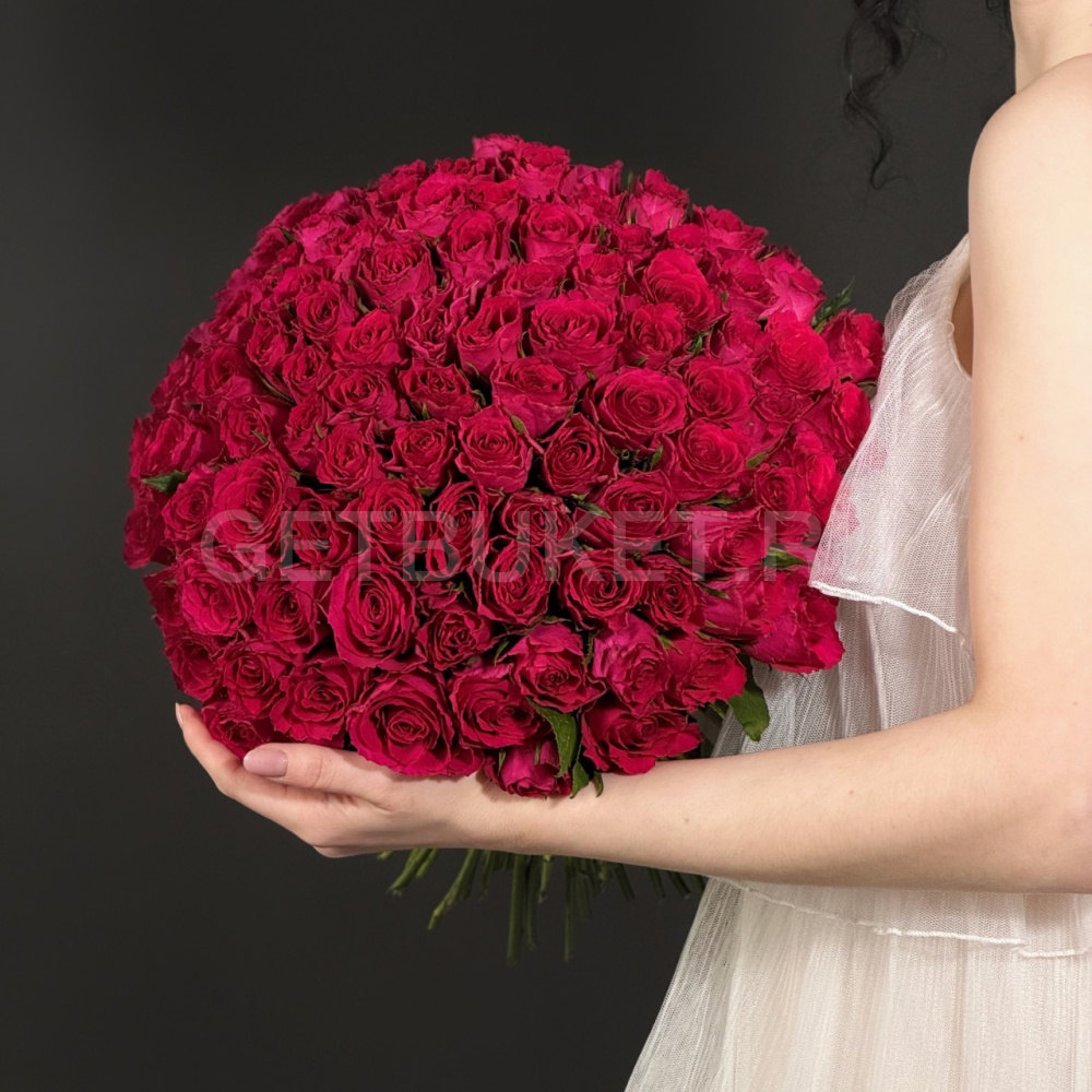 Букет из 101 малиновой кенийской розы