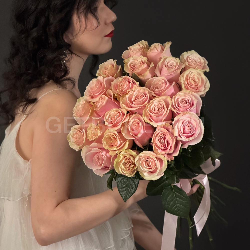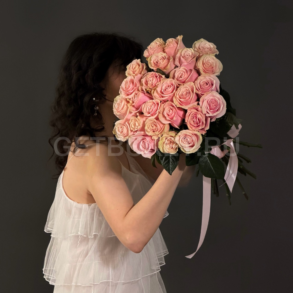 Букет из 25 нежно-розовых роз