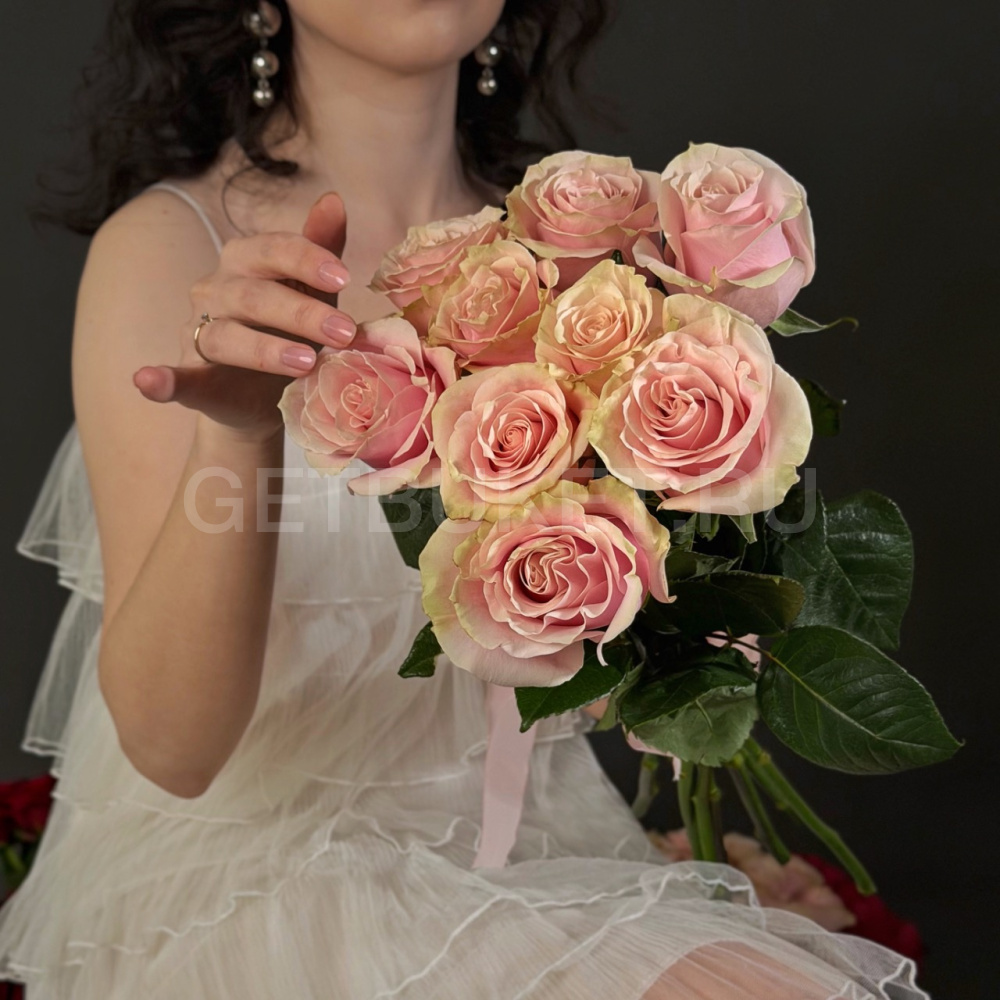 Букет из 9 нежно-розовых роз