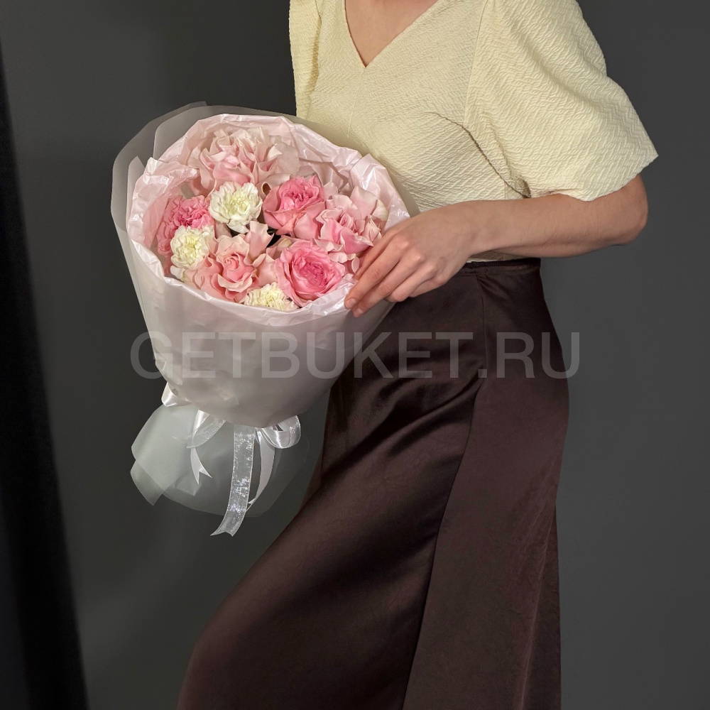 ХитБукет из розовых диантусов, роз и белых альстромерий4 160 ₽ХитБукет из розовых диантусов, роз и белых альстромерий 4 160 ₽ -