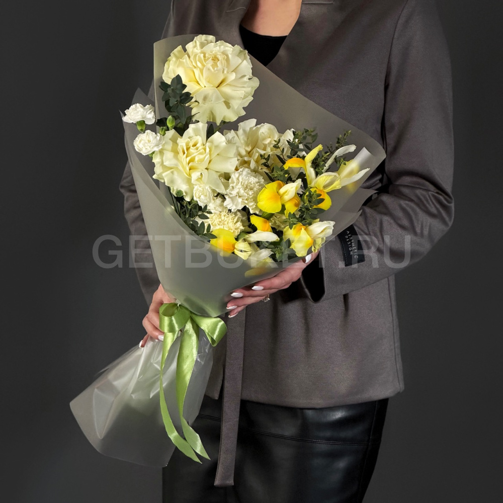 Букет из роз, ирисов и гвоздик