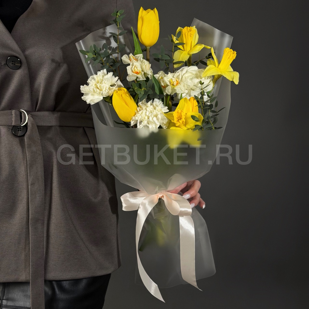 Букет из нарциссов, тюльпанов и форзиции5 590 ₽Букет из нарциссов, тюльпанов и форзиции 5 590 ₽ -